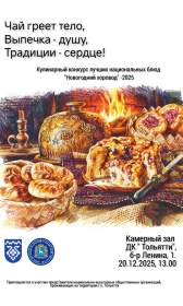 В Доме дружбы народов Самарской области (г. Тольятти, бульвар Ленина, 1, «ДК Тольятти») 20 декабря 2025 года состоится традиционный новогодний кулинарный праздник — конкурс лучших национальных блюд «Новогодний хоровод-2025». Мероприятие приурочено к Международному дню чая и направлено на сохранение кулинарных традиций народов, проживающих в Тольятти.