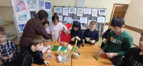 - Творческие мастер-классы для детей, направленные на развитие креативности и художественного мастерства, где дети с увлечением создавали новогодние подарки и украшения.