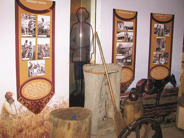 Экспозиция рассказывает о самобытной культуре мордвы на протяжении нескольких столетий. Здесь представлены прялки, рубели, коромысла, деревянная ступа, старинная глиняная посуда и многое другое. Также в музее есть немало образцов вышивки. Основными цветами в эрзянской и мокшанской вышивке были бордовый и темно-синий. Собраны здесь и копии архивных фотографий, рисунков и гравюр XVIII – начала XX века. На черно-белых снимках – эпизоды из жизни мордовского населения, снятые более века назад.