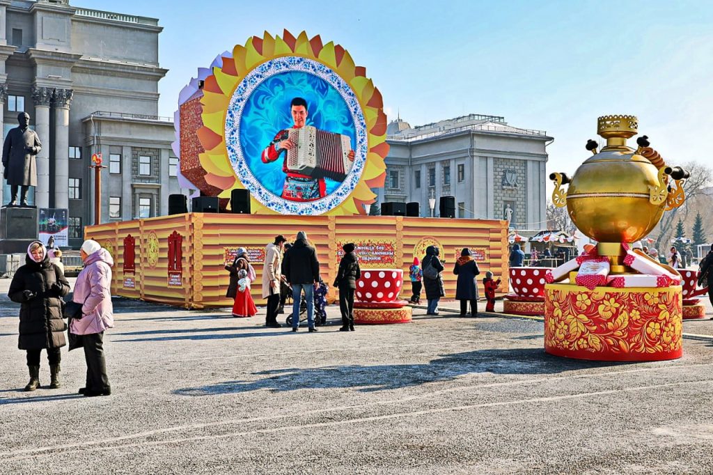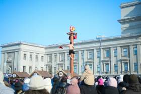 В Самаре основные праздничные мероприятия на Масленицу ежегодно проходят на площади Куйбышева, где строят целый праздничный городок, а в центре устанавливают главный символ народного праздника – большую и яркую Маслену.