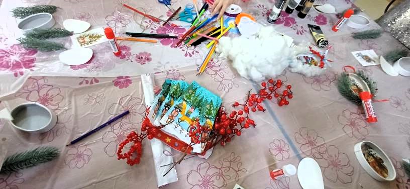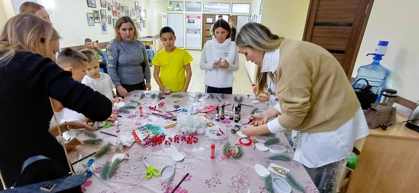- Творческие мастер-классы для детей, направленные на развитие креативности и художественного мастерства, где дети с увлечением создавали новогодние подарки и украшения.