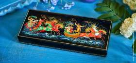 Кропотливый труд мастеров и тонкая проработка изображений – в этом кроется главный секрет образцов палехской росписи. Богатый сюжет, созданный из множества мелких штрихов, высокая детализация, необычный набор красок и золотая ажурная нить, обрамляющая рисунок, делают изделия по-настоящему сказочными.