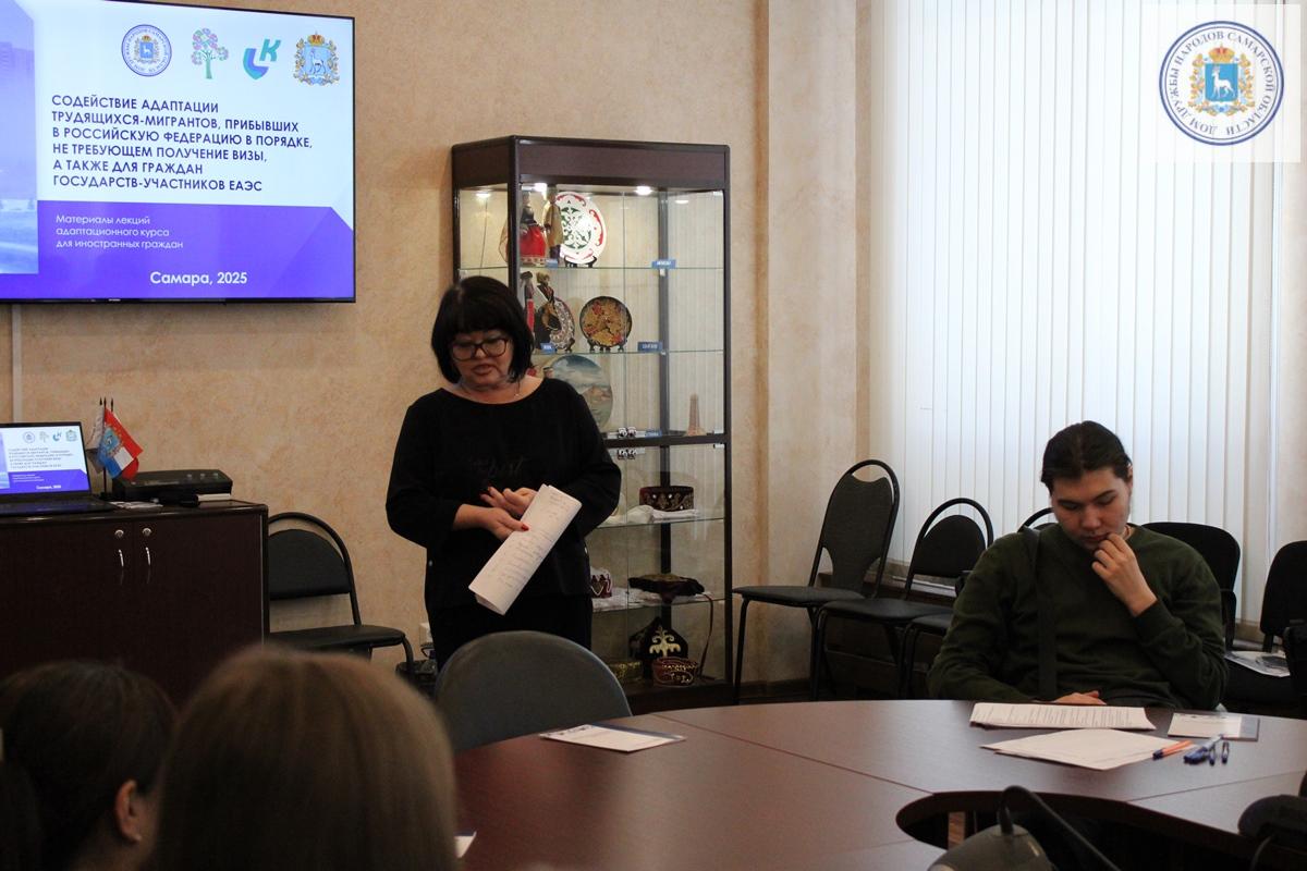 Вторая часть мероприятия носила практико-ориентированный характер и представляла собой специальную лекцию адаптационного курса, разработанного для молодежной аудитории. В интерактивной форме, с демонстрацией учебных видеоматериалов, ребята изучали историю России и Самарской области.