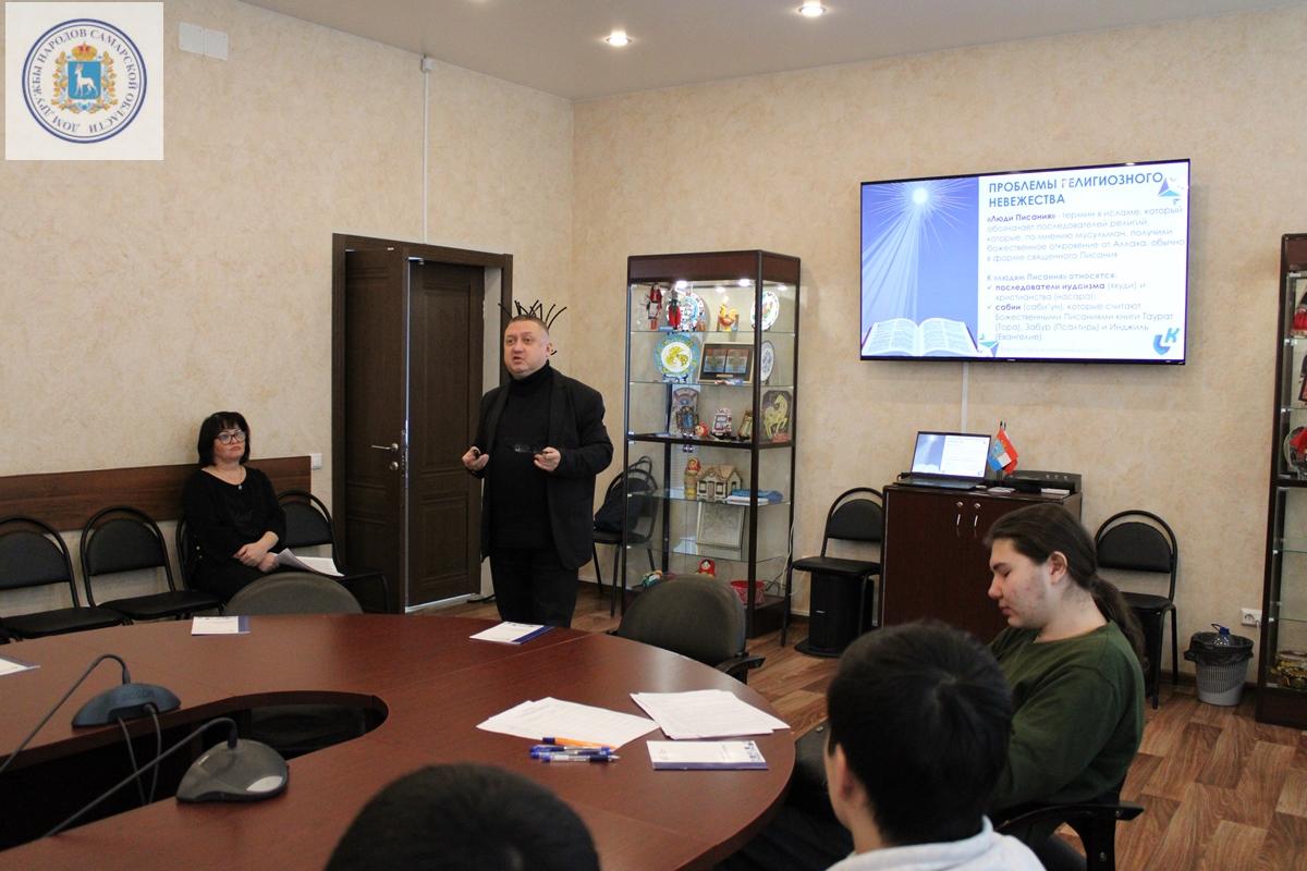 Ребята познакомились с историей создания и сегодняшней деятельностью Дома дружбы народов Самарской области, который в этом году отмечает свое 25-летие, и узнали много нового о культуре народов, исторически проживающих на этой земле. В атмосфере живого диалога студентам рассказали о самобытных традициях, красочных национальных костюмах, главных праздниках и особенностях кухни русского, мордовского и казахского народов.