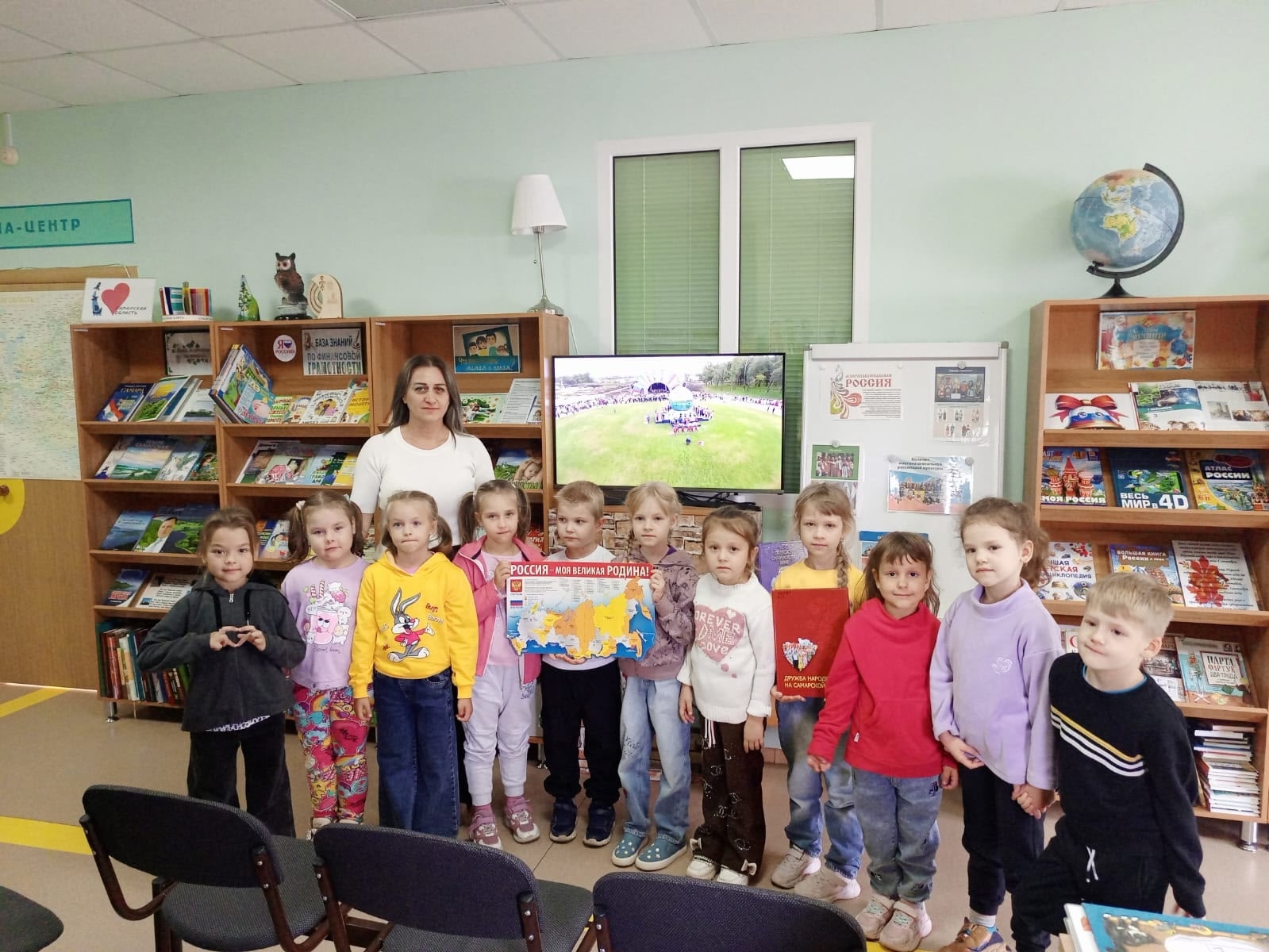 Ребята группы «Улыбка» детского сада «Колосок» в детской библиотеке еще раз вспомнили о том, что Россия – многонациональная страна, поговорили о народах, которые живут на Самарской земле, посмотрели познавательные видеофильмы.