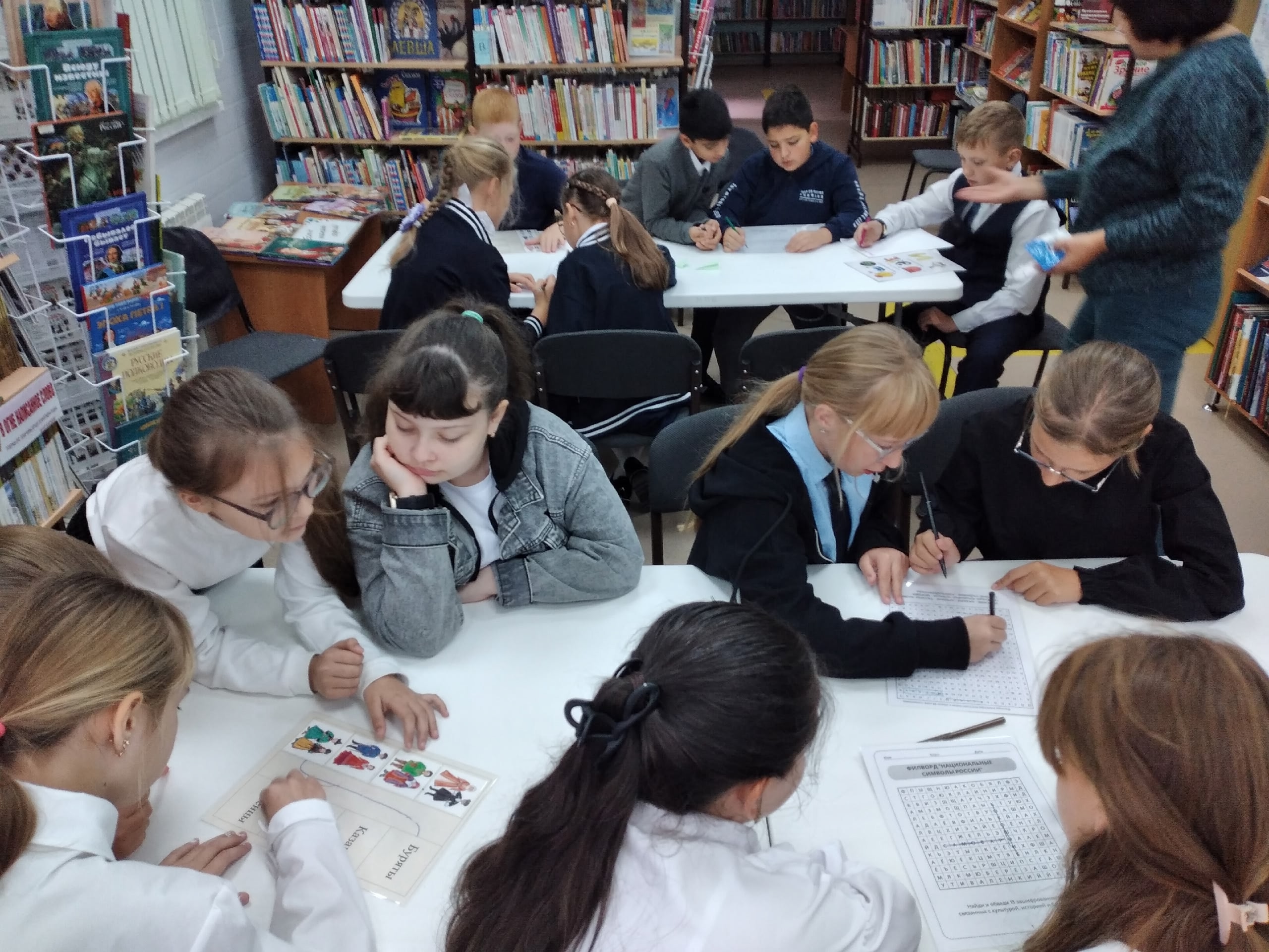 Для учащихся 8-х классов в библиотеке был проведен краеведческий квиз «Сила народов в его традициях». Библиотекарь рассказала о национальном составе Самарского края, продемонстрировала видеорассказ «Дом дружбы народов», провела викторину «Народы Самарской области» и предложила разгадать филворд «Национальности».